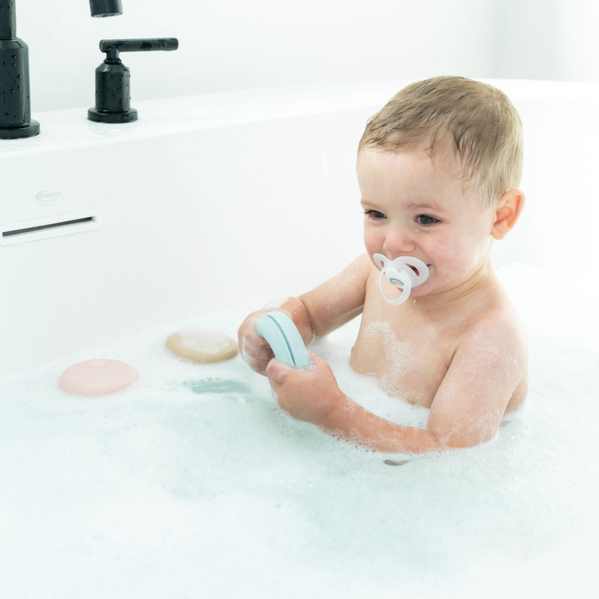 Make bath time (and playtime!) extra fun with our adorable Be Happy bath set, exclusive to Bouncee Co! These four trendy, aesthetic toys in taupe, cream, blush pink, and blue are not just cute—they’re practical too! Perfect for splashing around, teething, and imaginative play, they’re designed with busy parents in mind. These toys open up for easy cleaning and are completely dishwasher safe, so no mold worries here. Whether it's bath time, playtime, or gift time, these toys are a total win!